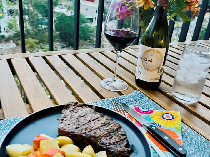 Vertical awnings to reduce the midday heat, adjustable dining & lounge chairs & our own Napoleon grill, combine to create our private outdoor sanctuary,